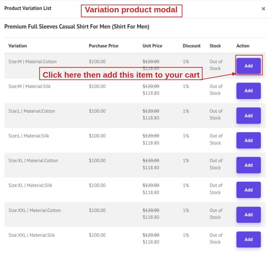 - If it's a variation product, a variant selection pop-up will open (Same as Variation Product).