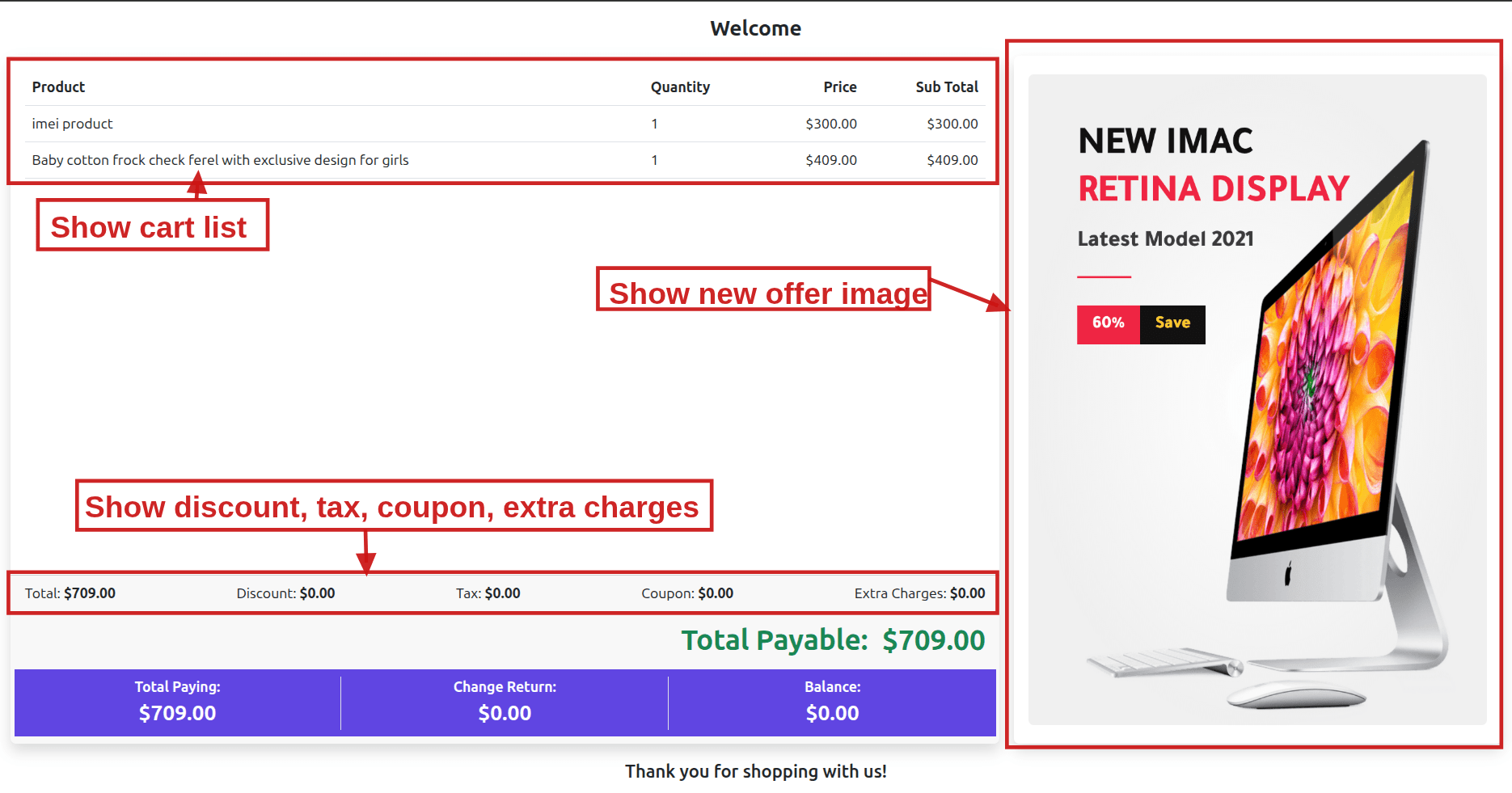 - Cart Items: All items currently in the POS cart.