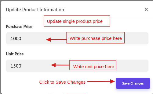 If you click Update Price, a modal will appear where you can update the product price and save the changes.