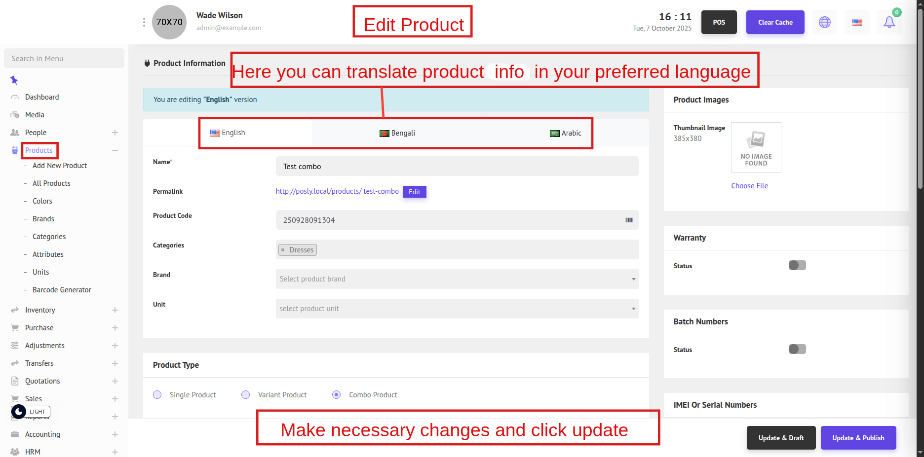 In this section, you can edit product information such as name, price, category, or stock details and update the product accordingly.