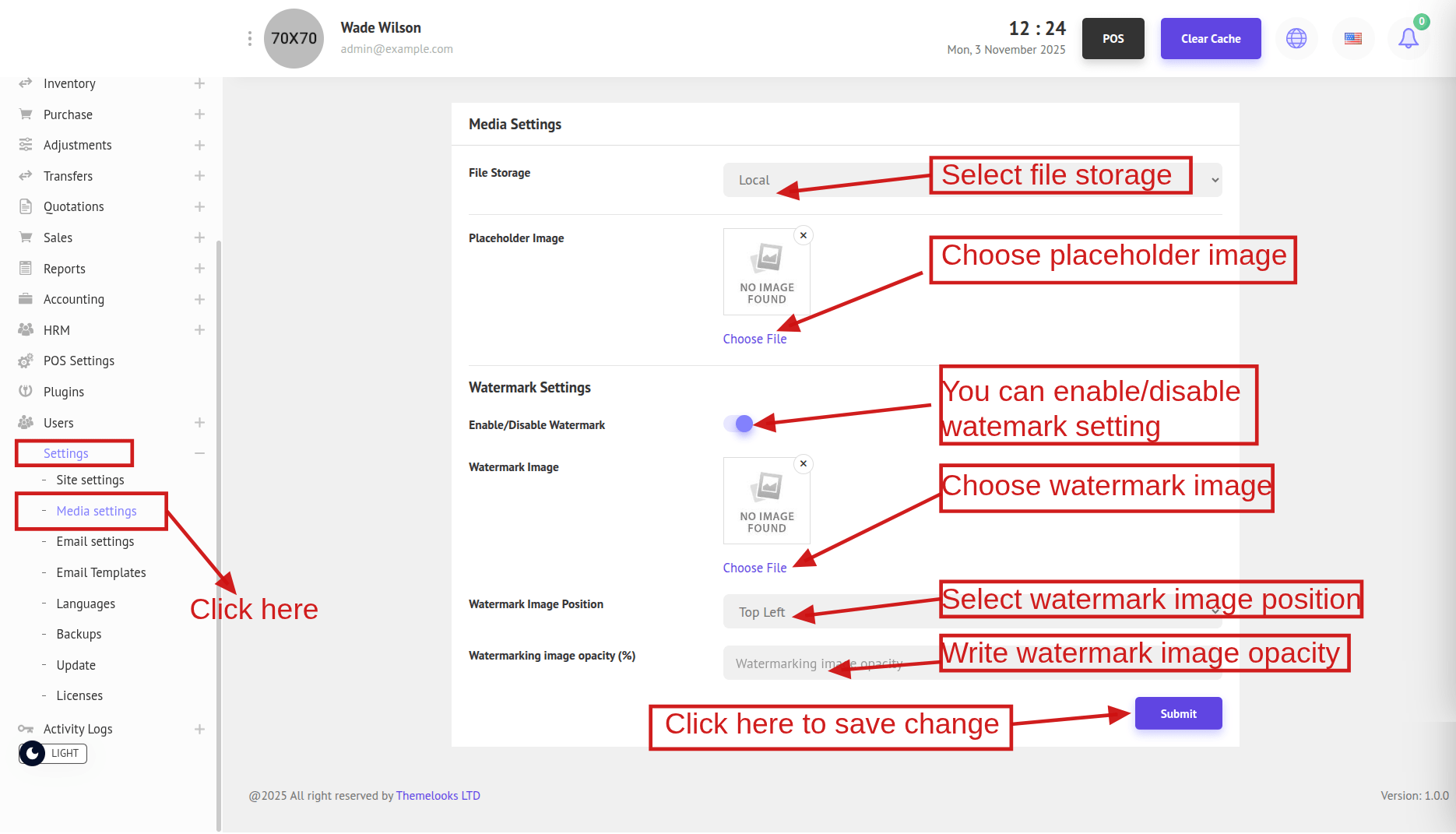 - Watermark Image opacity(%): In this section, you can set watermark image opacity in %.