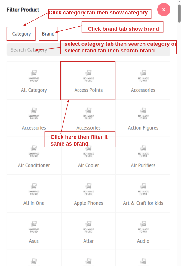 - By Category: Click the Category tab to view all available product categories. You can also search for a specific category using the search bar.
