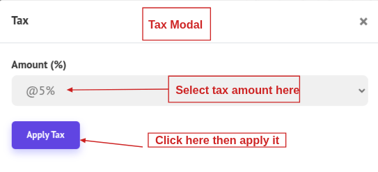 - Select the Tax and click Apply Tax. This will update the tax information and apply it.
