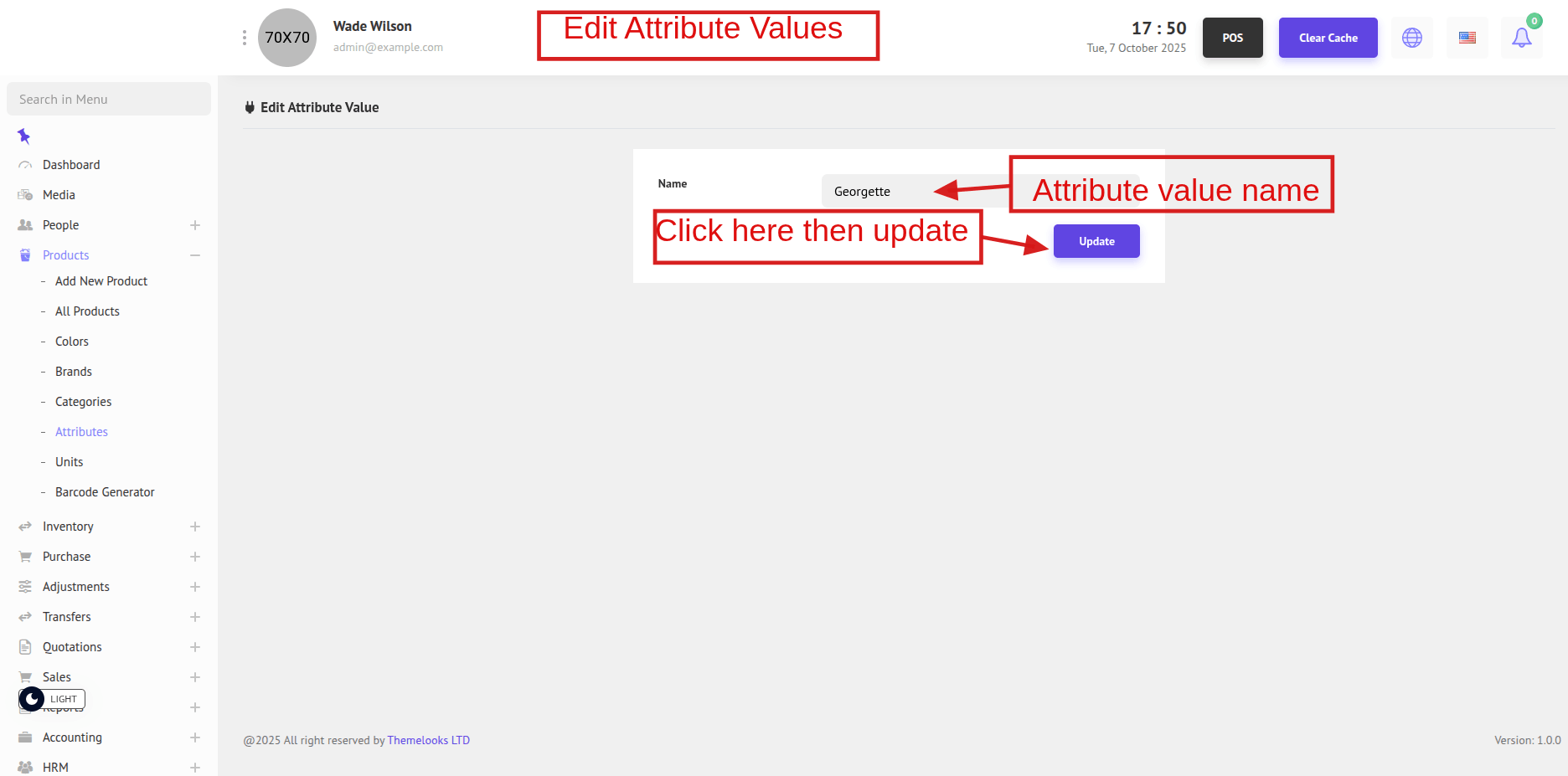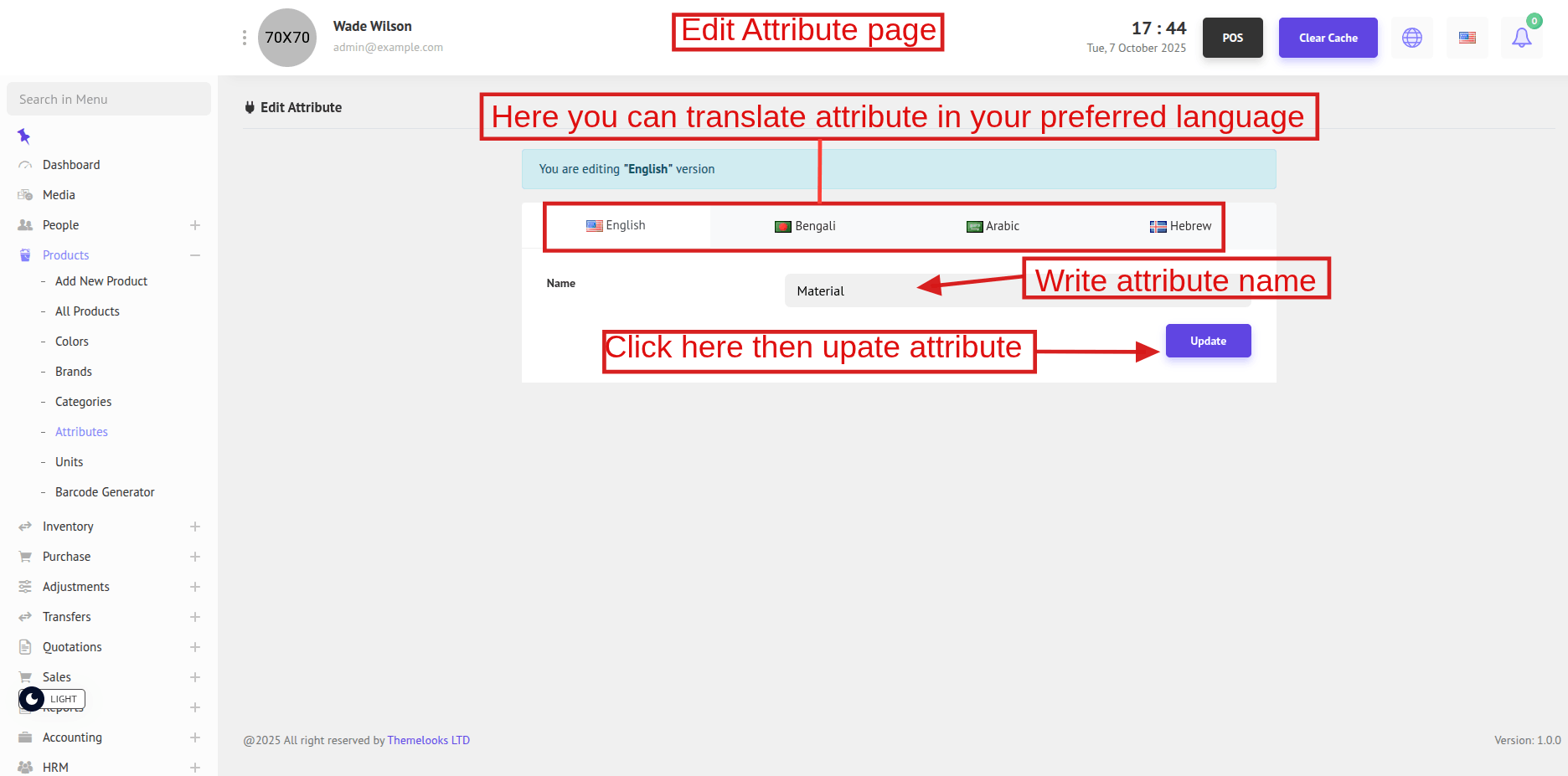 To update an attribute, click Edit from the Attribute List page. You will be redirected to the Edit Attribute page.