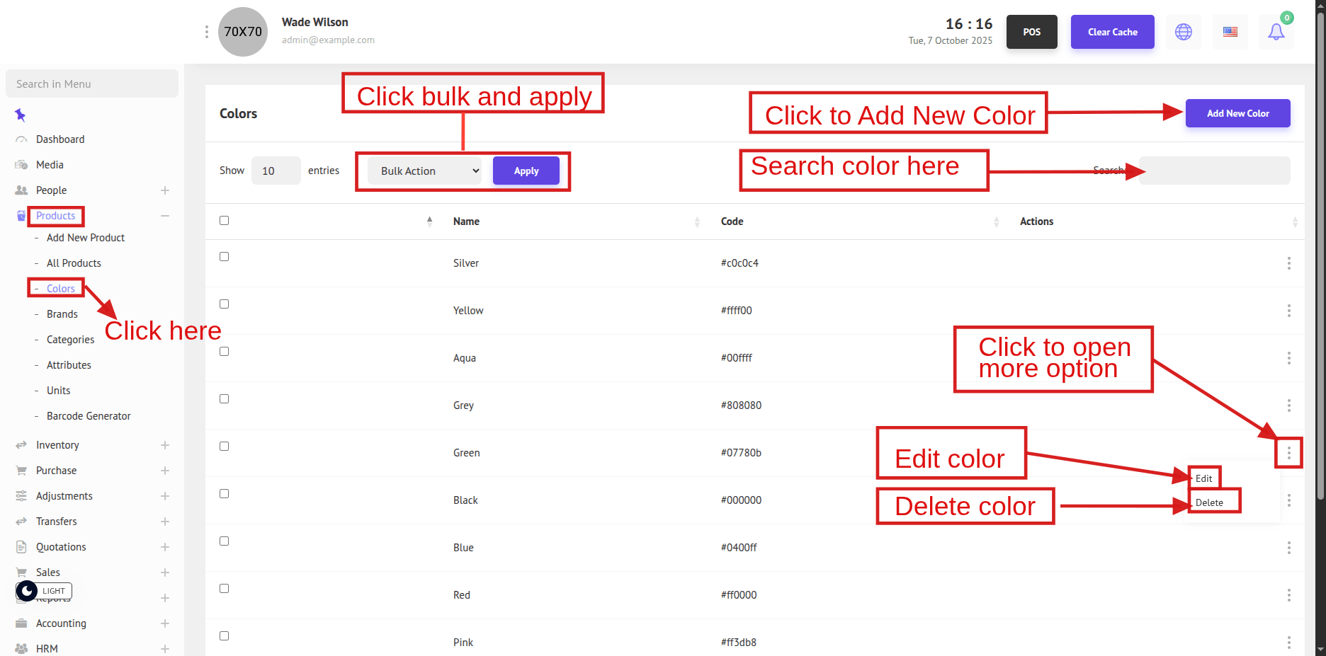 If you want to add a new product color, click Add New Color from the top menu. This will redirect you to the page where you can create a new color entry.